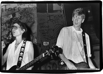 ![]() There are gig posters for a number of Mudd Club gigs between February and April 1982. However, many of these dates are crossed out in Lee's meticulous journal, so I've removed them: February 19th and 20th, shattering any notion that these were Richard Edson's final gigs, and also March 31st. That leaves April 1st for the fabulous set of pictures that I've determined are probably all from the same Mudd Club gig. A promotional poster for Sonic Youth was made featuring individual shots of all four members, and three of them are taken from this same gig (Lee's is the classic drill instruction from CBGB '81). Some of these pix were in Sonic Death and some accompanied early magazine interviews. Kim is now playing a white Fender Mustang bass. Thurston also played the Mustang bass when he would join the Swans onstage, like in this example from a CBGB gig, likely July 5th - and hey, Mike Gira is playing the black Les Paul style bass that Kim was using before! Perhaps they'd just borrowed it (see another Swans gig where Gira is playing the same bass).